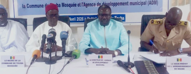 La commune de Touba Mosquée et l’Agence de Développement Municipal (ADM) ont procédé, ce jeudi 23 avril 2026, à la signature d’une convention de partenariat d’une durée de trois ans visant à accompagner le développement urbain, économique et social de la ville sainte.